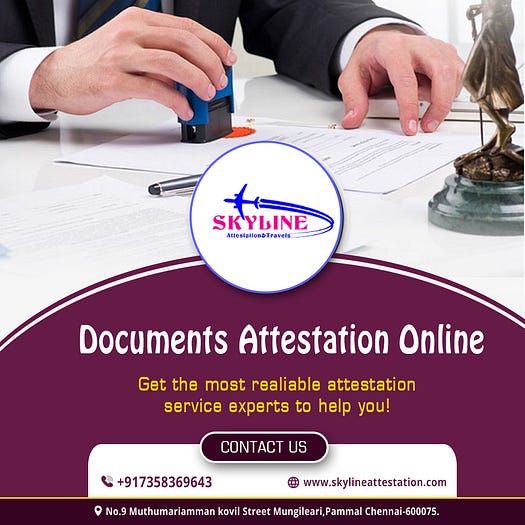 Get Best Attestation Service Online at www.skylineattestation.com and contact us : +919176554357, +917358369643. If suppose you need direct visit : №9 Muthumariamman kovil Street, Mungileari,Pammal Chennai-600075